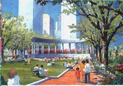 Imagine the restored historic Peristyle, a semi-circle of classical columns, at the north end of the park, facing Randolph Street. This recreation of a structure which existed at this site in the original park, will be rebuilt with a reflecting pool in front of it.